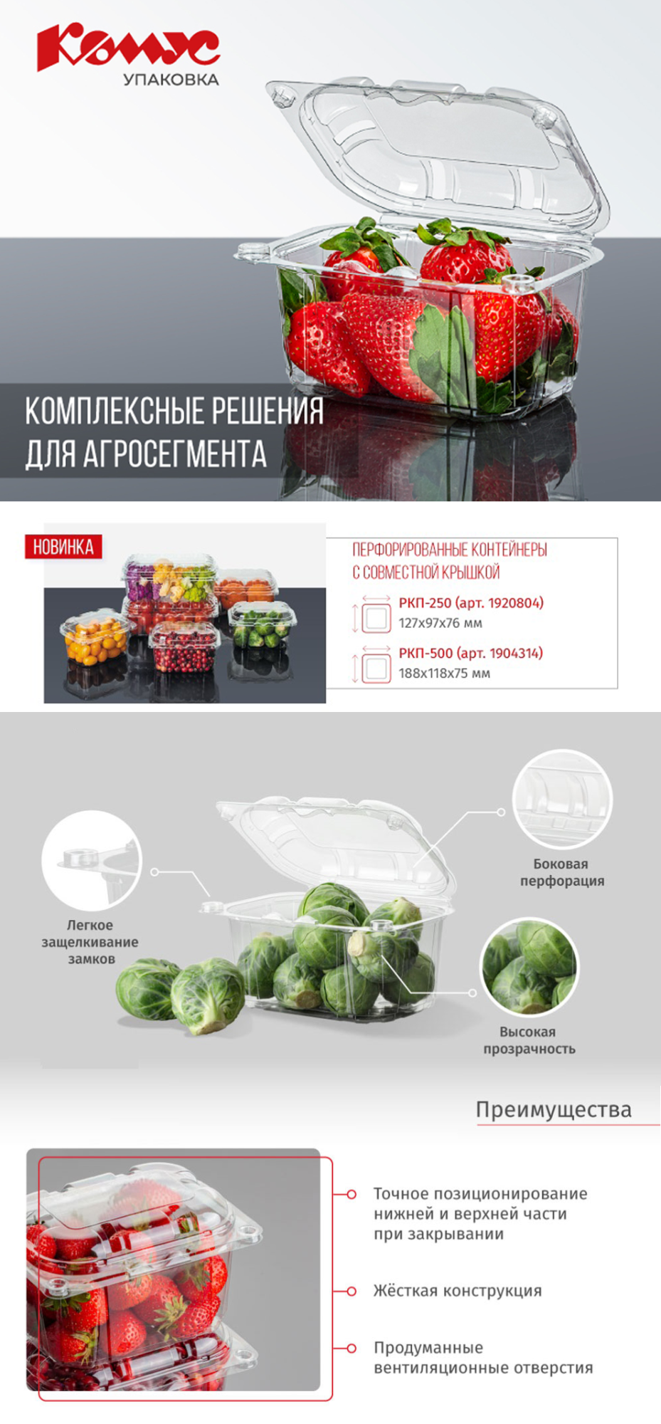 Емкость перфорированная для черри и ягод с крышкой 500 г РКП-500 прозрачная (360 шт.) Комус 1904314
