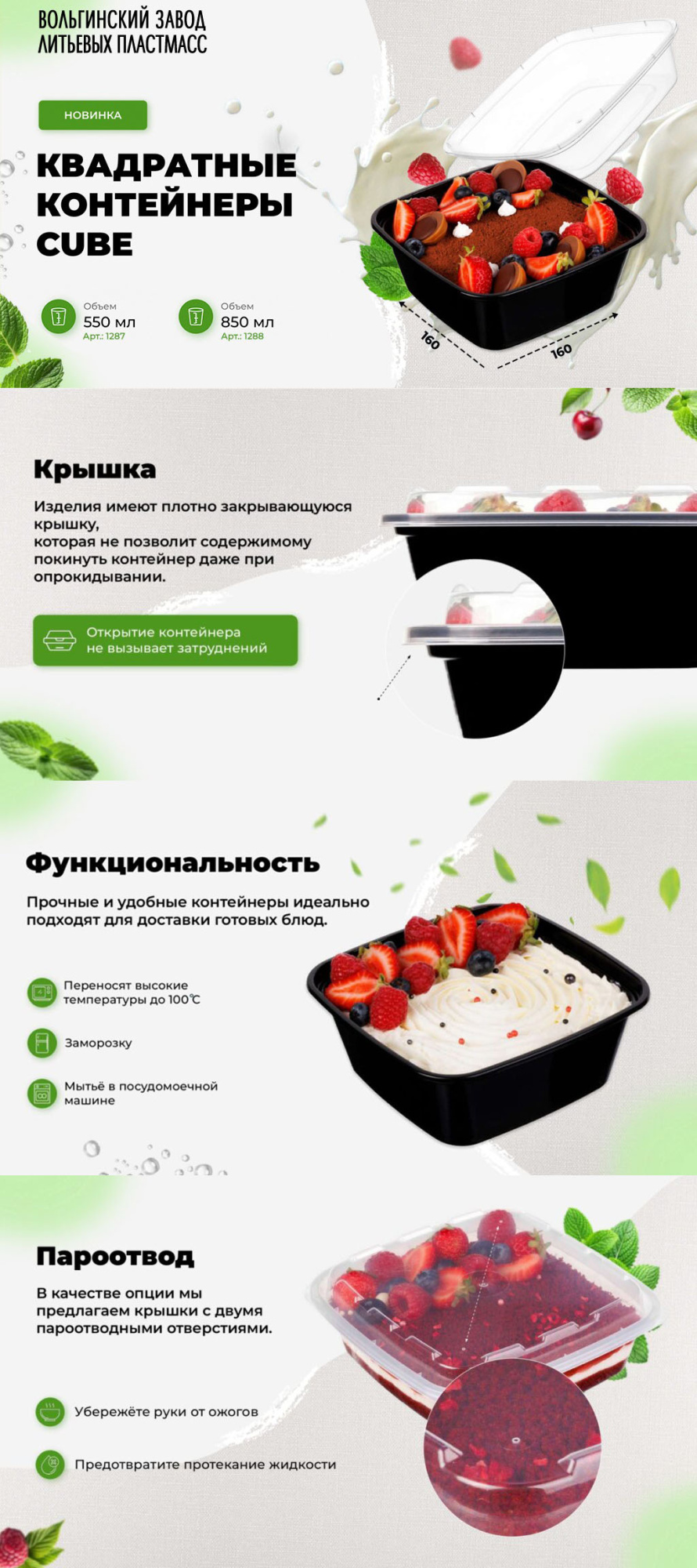 Контейнер квадратный550 мл (160х160х40) ВЗЛП (150 шт.) комплект 1287ч